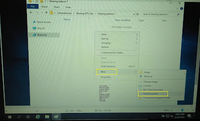 6.Kemudian dalam folder sharing kita buat folder kembali, dengan cara Klik Kanan New dan Pilih Text Document.